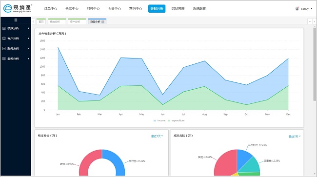 利用可視化技術(shù),對數(shù)據(jù)進行數(shù)據(jù)分析,例如本年收支分析,成本分析,利潤分析等。