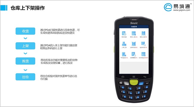 使用PDA快速進(jìn)行簽收快遞,可自動(dòng)生成快遞條碼回執(zhí),還有掃描條碼上架,清晰的揀貨策略和出倉(cāng)操作;
