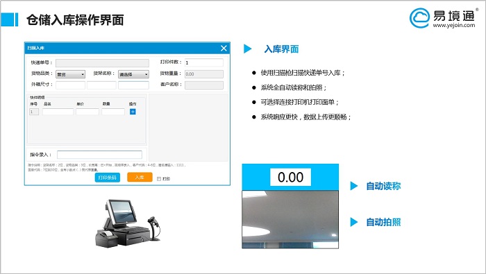 易境通集運(yùn)系統(tǒng)的桌面軟件,是針對倉庫操作而設(shè)定的,可以配合打印機(jī)還有電子秤和掃描槍,當(dāng)然也可以連接我們的快手設(shè)備,進(jìn)行入庫和拍照等。
