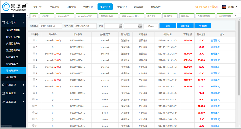 跟客戶結算的計費方案與自己的成本方案分開計算,不同倉庫之間費用分開計費,成本與代理商費用結算,真正做到個性化計費。