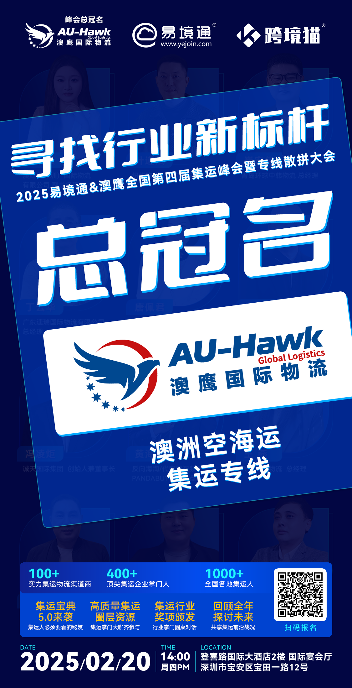 2025年2月20日,由易境通和跨境貓聯(lián)合主辦、澳鷹國際物流總冠名的全國第四屆集運峰會暨專線散拼大會將在深圳登喜路國際大酒店隆重舉辦!