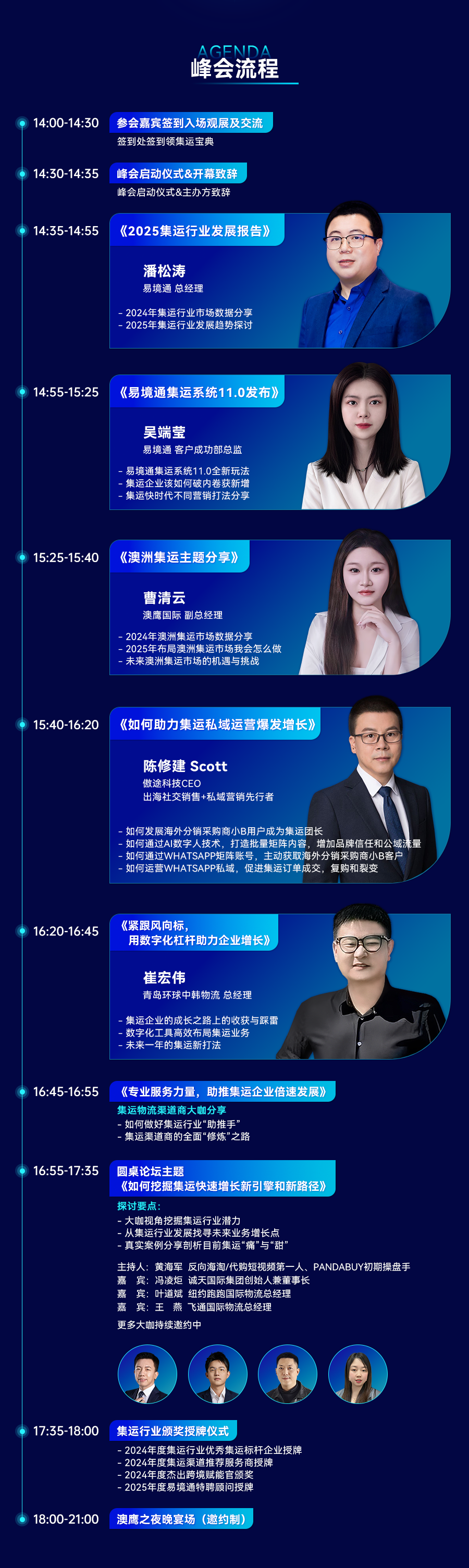 本次峰會的主題為「尋找行業(yè)新標(biāo)桿」,旨在通過深度的行業(yè)交流,探索跨境電商與物流行業(yè)的未來發(fā)展方向。大會將涵蓋新品發(fā)布、主題演講、圓桌論壇、展商展區(qū)、行業(yè)頒獎及特邀大咖晚宴等多個精彩環(huán)節(jié),為參會者提供了一個全方位、多角度的交流平臺。