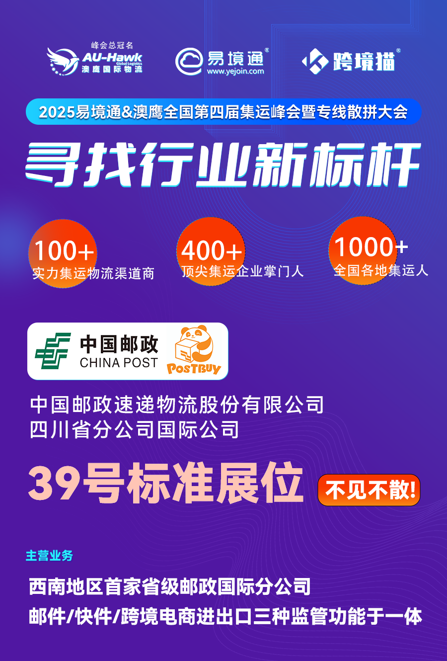 2025 年這場(chǎng)集運(yùn)人的年度 Party,無(wú)疑是行業(yè)交流合作的絕佳平臺(tái)。四川郵政在標(biāo)準(zhǔn)展位 39 號(hào)期待與您相聚,一同探討合作機(jī)會(huì),攜手共創(chuàng)集運(yùn)行業(yè)的美好未來(lái)。2月20日,讓我們齊聚深圳,共赴這場(chǎng)集運(yùn)盛宴,在交流與合作中開啟集運(yùn)行業(yè)的新篇章!