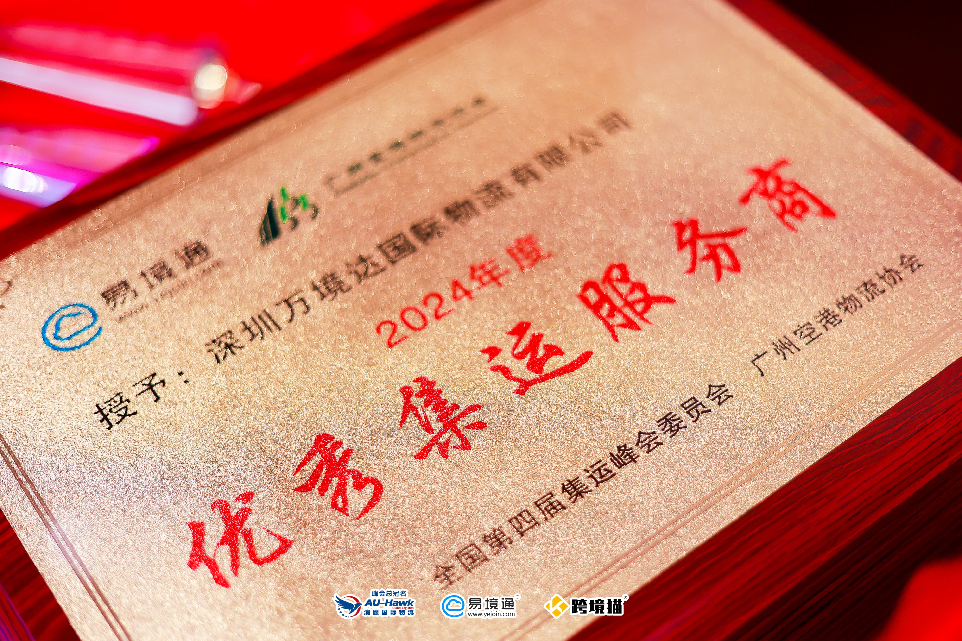 值得一提的是,在峰會上,萬境達(dá)獲得了“2024年度易境通推薦集運(yùn)服務(wù)商”的榮譽(yù)授牌。將激勵萬境達(dá)繼續(xù)秉持創(chuàng)新精神,不斷優(yōu)化服務(wù)流程,提升服務(wù)質(zhì)量,為客戶提供更加高效、便捷、安全的物流解決方案。