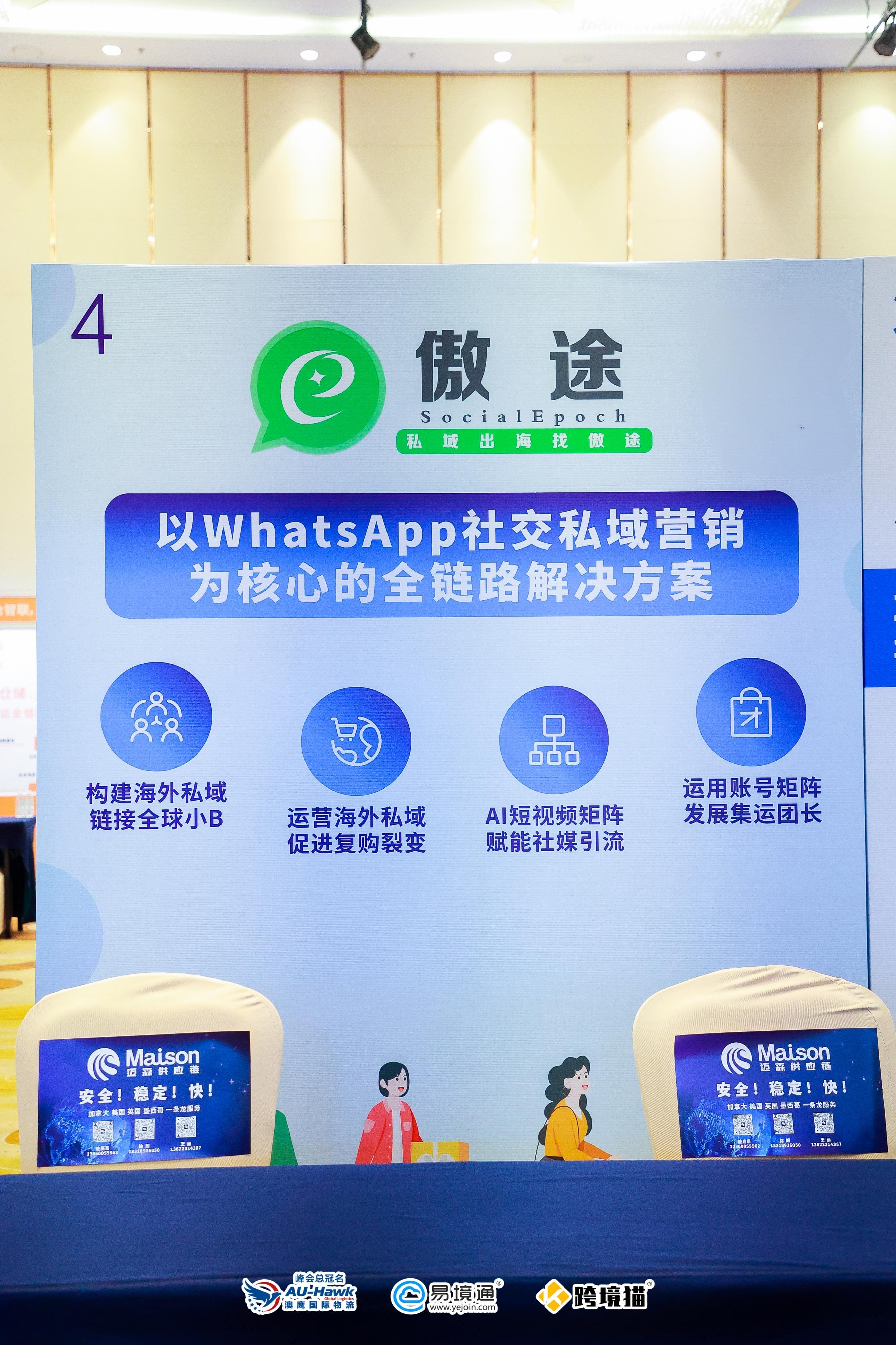 他進(jìn)一步介紹了傲途科技社交銷售和私域營銷全鏈路解決方案,企業(yè)可以基于AI+IP技術(shù)高效打造海外社媒銷售IP短視頻,實(shí)現(xiàn)多社媒平臺矩陣賬號的運(yùn)營。同時,銷售名片、WhatsApp營銷場景戰(zhàn)術(shù)和工具運(yùn)用,助力集運(yùn)企業(yè)精準(zhǔn)觸達(dá)潛在客戶,實(shí)現(xiàn)私域運(yùn)營的爆發(fā)增長。