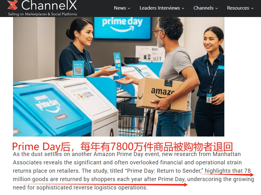 以亞馬遜Prime Day為例,根據(jù)曼哈頓聯(lián)合公司數(shù)據(jù)顯示:每年大促后產(chǎn)生的退貨量高達(dá)7800萬(wàn)件;英國(guó)市場(chǎng)更甚,55%的消費(fèi)者會(huì)退回Prime Day商品,僅16%消費(fèi)者會(huì)退回超半數(shù)商品,每件退貨產(chǎn)生20-50英鎊處理成本,疊加履約損耗與二次銷售折價(jià),部分賣家退貨成本已占售價(jià)30%。
