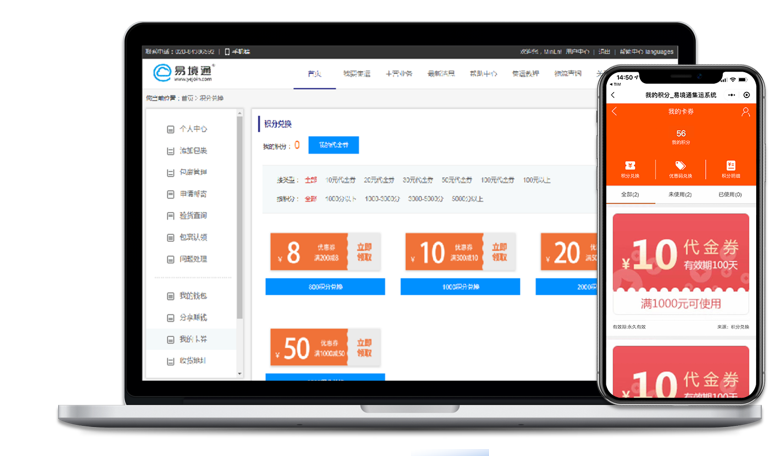 易境通集運(yùn)系統(tǒng)的積分卡券功能