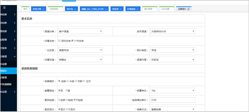 易境通集運(yùn)系統(tǒng)報(bào)價(jià)管理
